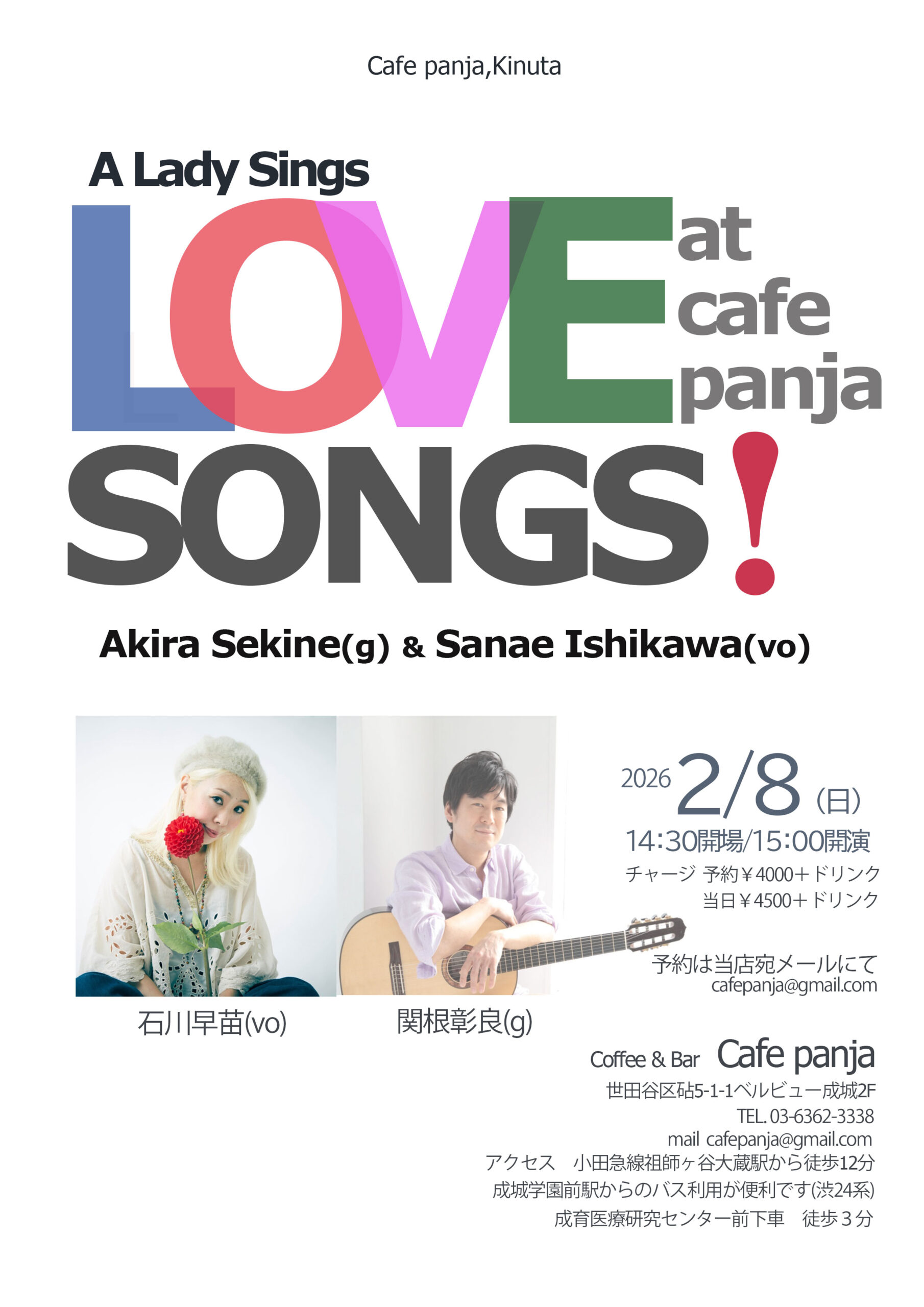 | A Lady Sings Love Songs! at Cafe Panja 日時:2026年2月8日(日)15:00開演(14:30開場) |